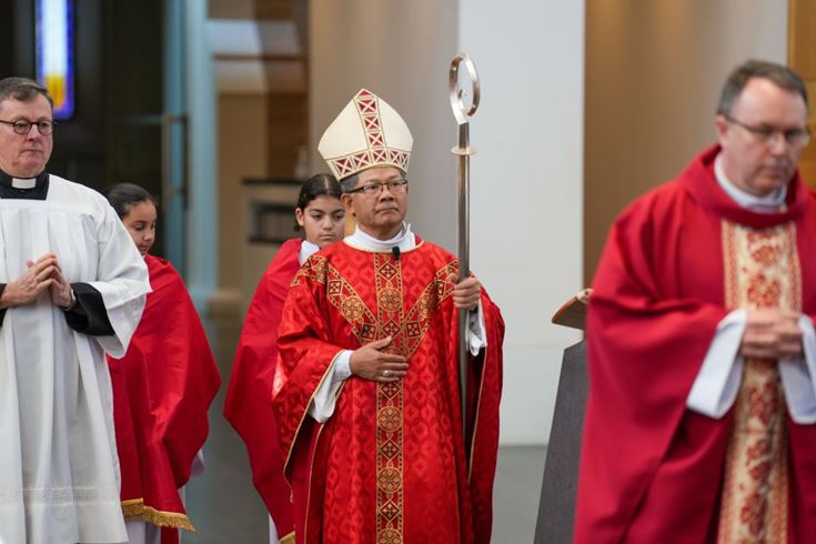 Bishop Vincent joined the large crowd, talking with students and staff about their schools’ social justice and mission initiatives.